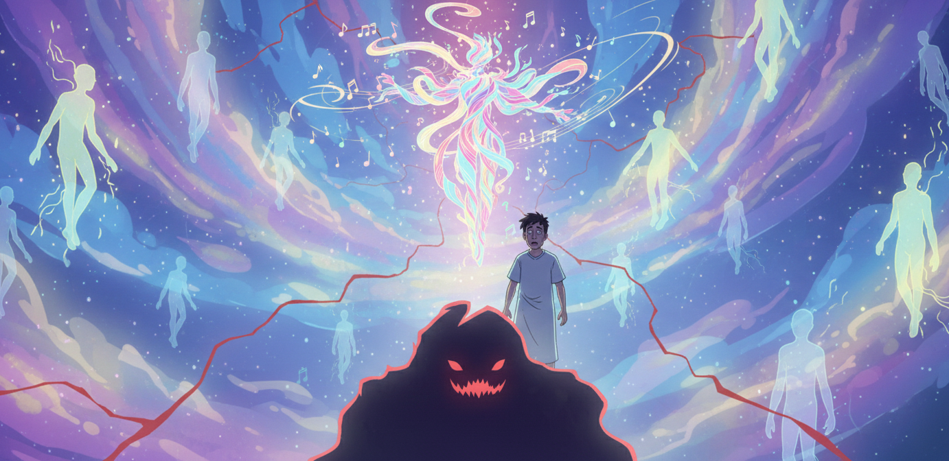 But then… there was another light in the distance, one that seemed to make even the entity somehow afraid. It sneered and roared at the approaching light like a lion being caged. It turned and fled, darkness, hatred, and fear seemingly departing with it.